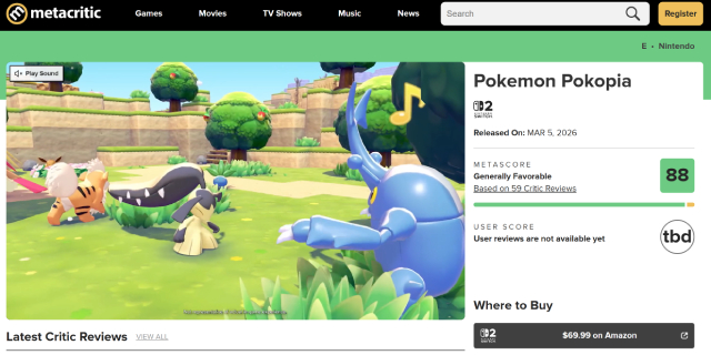 Luego del novedoso tráiler de la nueva generación de Pokémon y con el lanzamiento programado de Pokémon Pokopia para este jueves 5 de marzo de 2026, sorpresivamente el juego logró altas notas por parte de la crítica especializada, otorgándole un 88 en Metacritic, siendo uno de los videojuegos de la franquicia de los monstruos de bolsillo mejor calificados de todos los tiempos.