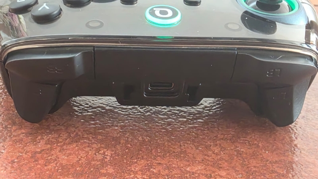La conectividad es otro punto fuerte del QRD FERROX M5, con un dongle de 2,4 GHz dedicado que prioriza baja latencia y estabilidad, pensado sobre todo para Xbox y PC, además de modo cableado USB‑C. El mando incluye además jack de 3,5 mm para conectar audífonos y micrófono directamente, algo clave para chat de voz en consola cuando se quiere mantener la experiencia lo más simple posible.