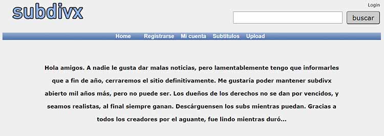 "A nadie le gusta dar malas noticias, pero lamentablemente tengo que informarles que, a fin de año, cerraremos el sitio definitivamente", dice el texto publicado por el administrador del sitio, en el que agregan que "me gustaría poder mantener subdivx abierto mil años más, pero no puede ser. Los dueños de los derechos no se dan por vencidos, y seamos realistas, al final siempre ganan".
