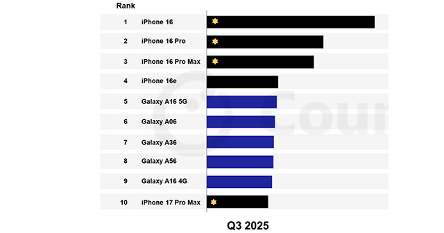 iPhone 16 y Galaxy A16 entre los teléfonos más vendidos del tercer trimestre de 2025