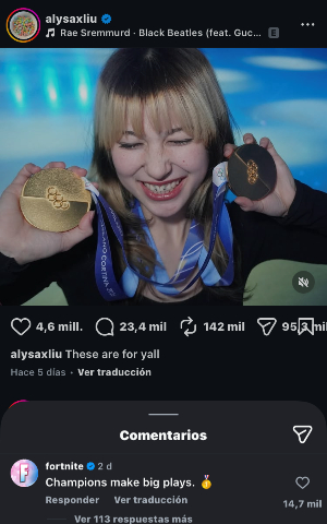 Tras el buen recibimiento de los internautas, Fortnite hizo acto de presencia en una de las publicaciones que realizó la deportista en sus redes sociales, específicamente en Instagram, en donde la cuenta oficial del videojuego comentó el post diciendo que "Los campeones hacen grandes jugadas", aumentando las teorías de la adaptación de la patinadora en el Battle Royale.
