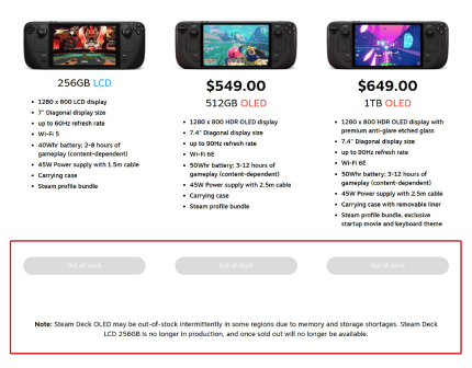 Tras el anuncio por parte de Valve de diciembre pasado de que la versión de Steam Deck LCD se retiraría, el panorama para la consola se dificultaría aún más debido a que ahora será sumamente difícil conseguir la versión OLED de la consola, ya que varios países han informado que la consola portátil está completamente agotada en el sitio web de Steam Deck.