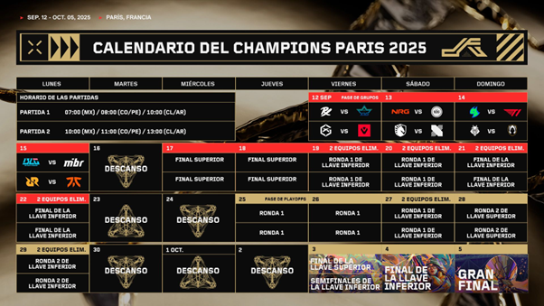 Todo se definirá en París. El mayor escenario del VALORANT Champions Tour (VCT) 2025 está listo para comenzar al enfrentar a los mejores equipos del mundo en el Champions, que se realizará entre este 12 de septiembre y 5 de octubre.
