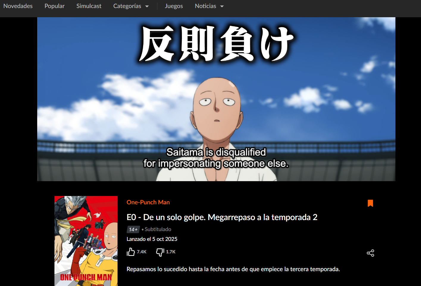 ¿Seguirá emitiendo los episodios restantes de la temporada? Nada se ha dicho aún y desde la plataforma de anime perteneciente a Sony no se han pronunciado respecto a si el especial tendrá subtítulos en español. Además, el streaming había eliminado todos los anuncios sobre la disponibilidad de la tercera temporada de One-Punch Man en Latinoamérica.
