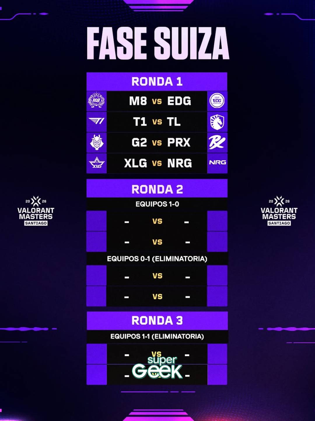 Todo está listo para el primer torneo internacional del VALORANT Champions Tour (VCT) 2026, Masters Santiago, definió las fechas y los horarios de las primeras partidas que se darán en Chile en este histórico torneo que se divide en dos fases, la Fase de Sistema Suizo y la Fase de Playoffs.