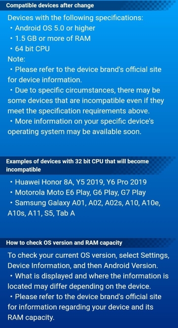 Y si bien los nuevos requerimientos no son tan exigentes (Android 5.0, 1.5GB RAM y CPU de 64 bit), el problema viene porque hay varios dispositivos que se lanzaron hace un año o máximo dos que quedarán fuera. Y no hablamos de cualquiera, sino que de marcas que tienen una gran venta en nuestro país como son Samsung y Motorola.