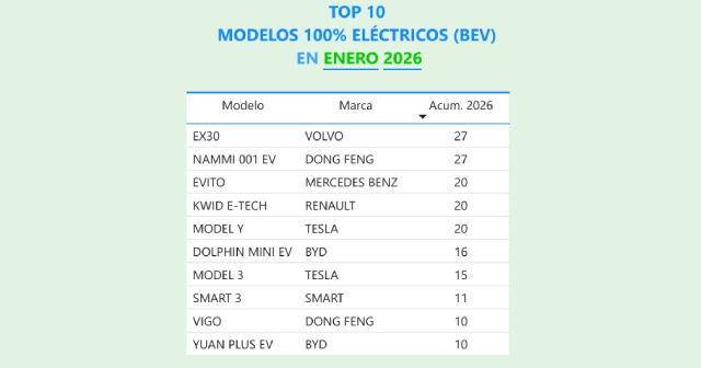 En el resto del listado destacan el Mercedes-Benz eVito y el Renault Kwid E-Tech, ambos con 20 unidades, además del Smart 3 con 11, que completan el panorama de un mes marcado por la diversidad de marcas y la consolidación de nuevos actores, principalmente de China.
